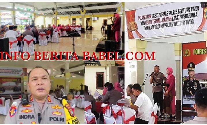 Belitung Timur, infoberitababel.com – Kapolres Belitung Timur AKBP Indra Feri Dalimunthe, S.H., S.IK., M.H, didampingi jajaran Anggota Polres Belitung Timur pimpin langsung Sertijab dan Pelantikan Kasat Resnarkoba dan Kasat Kasi Propam. Bertempat di Aula Mal Polres Belitung Timur, Senin (25/11/2024).