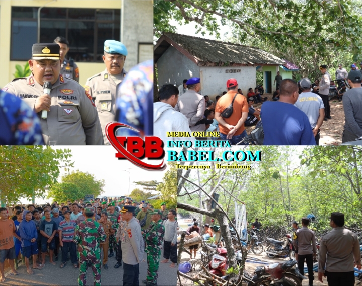 Belitung, infoberitababel.com – Menyikapi maraknya aktivitas penambangan timah ilegal di kawasan perairan Munsang, Desa Sungai Padang, Kecamatan Sijuk, jajaran Polres Belitung bersama Kodim 0414/Belitung dan unsur pemerintah daerah menggelar operasi gabungan berupa himbauan dan pembinaan kepada masyarakat, Senin (28/7/2025).