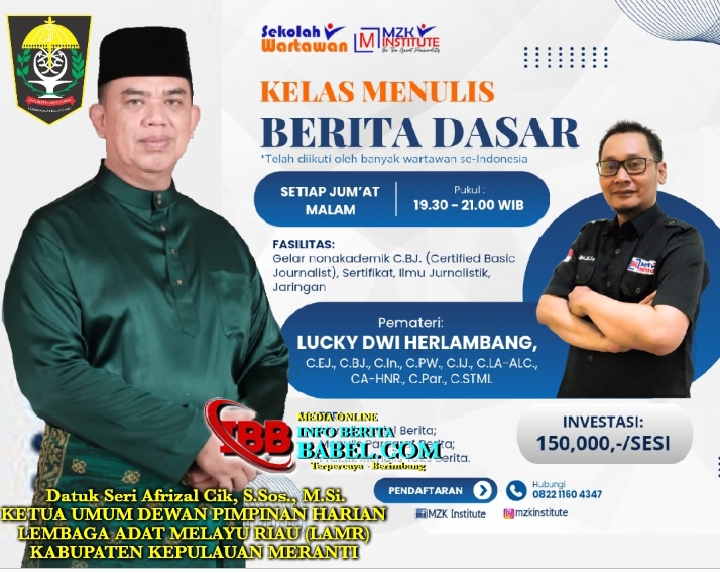 Riau, Selatpanjang, infoberitababel.com – Dalam rangka pengembangan sumber daya manusia, Lembaga Adat Melayu Riau (LAMR) Kabupaten Kepulauan Meranti berencana mengadakan kursus sekolah pendidikan wartawan bersama Sekolah Wartawan MZK Institute pada 01 Agustus 2025.