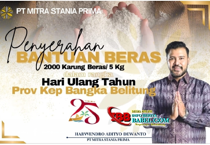 PT Mitra Stania Prima Serahkan 2.000 Karung Beras untuk HUT ke-25 Provinsi Kepulauan Bangka Belitung