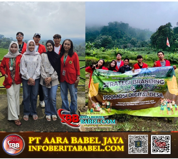 Mojokerto, infoberitababel.com – Mahasiswa Universitas 17 Agustus 1945 (Untag) Surabaya melaksanakan program pengabdian kepada masyarakat guna memperkuat branding Desa Kedungudi, Kecamatan Trawas, Kabupaten Mojokerto, melalui penguatan digitalisasi sektor wisata. Kegiatan yang dilaporkan pada 12 Januari 2026 ini menyasar kawasan wisata unggulan desa, seperti Sky Park Hill dan jalur pendakian Sarah Klopo. Rabu (14/1/2026).